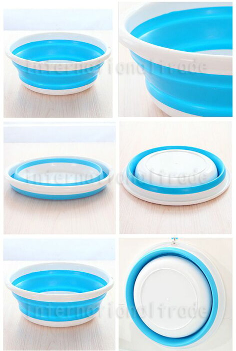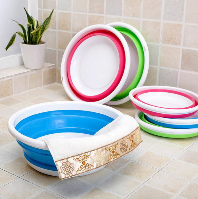 軽量でコンパクトな折り畳み式携帯たらいです。